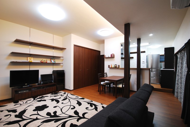 他社さんでは、段差があるため無理だと言われていた対面キッチンを実現でき、とてもお喜びいただきました。